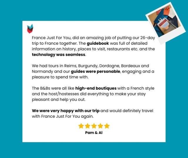 This itinerary is just the beginning. When you book a self-drive tour with France Just For You, we’ll tailor everything to your interests and preferences - from charming B&B and boutique hotel accommodations and car rental to tickets, cooking classes, and other fun local activities.